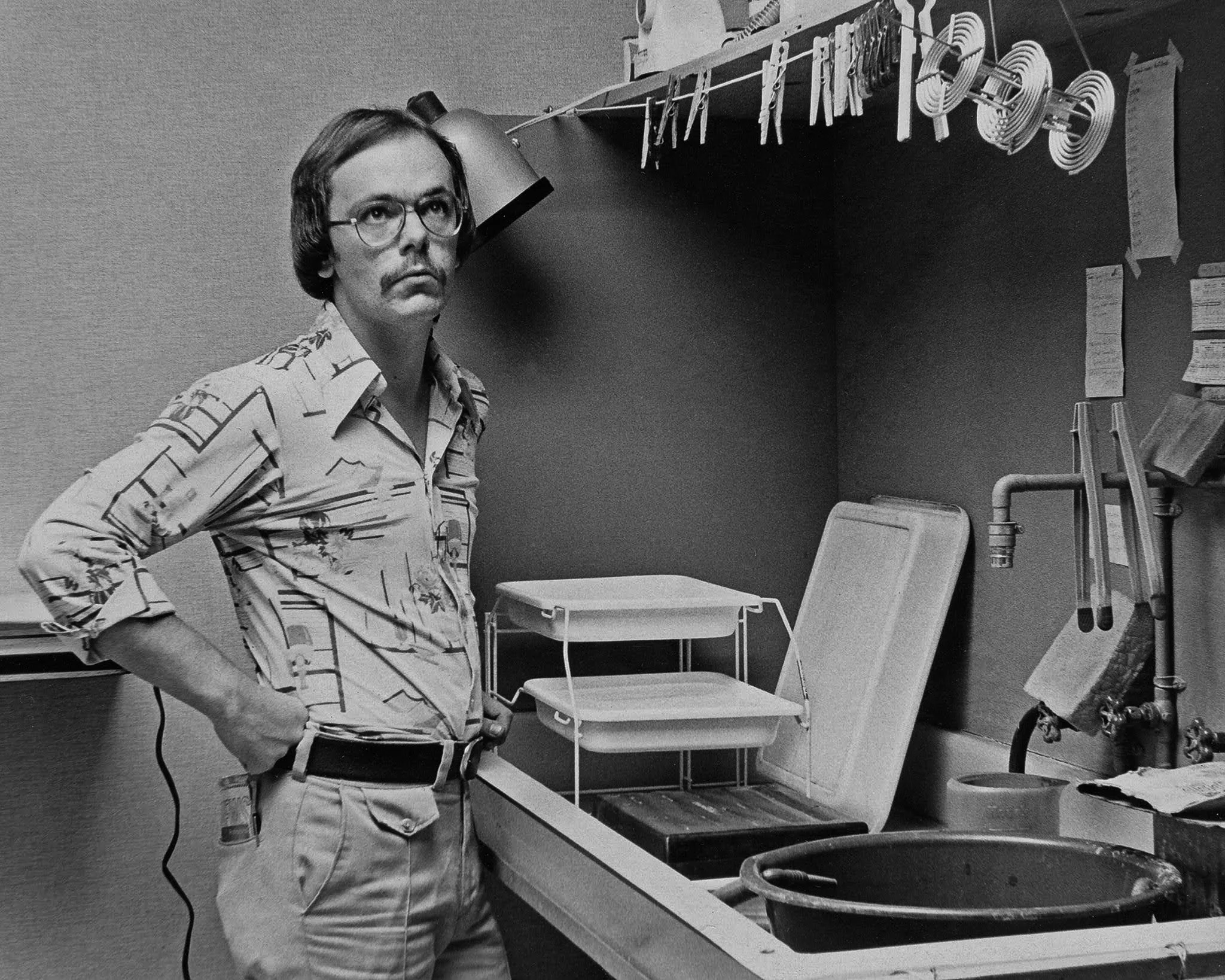 John, taking a smoke break in The Tribune-Review darkroom, 1975.